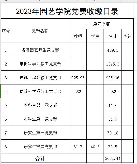 园艺学院2023年四季度党费收缴情况公示