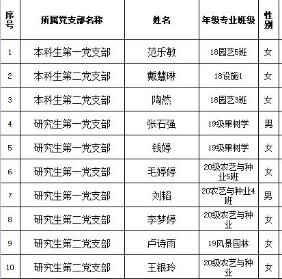 关于拟确定范乐敏等10位同学和为建党对象的公示