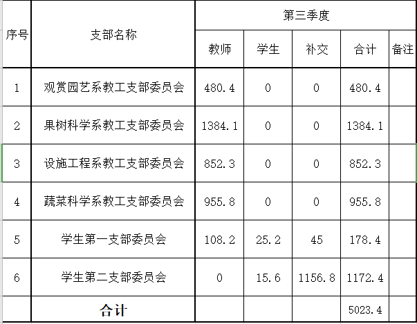 园艺学院2020年三季度党费收缴情况公示
