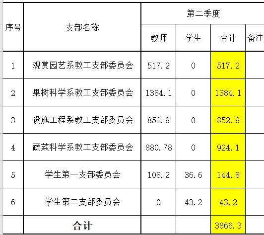 园艺学院2020年二季度党费收缴情况公示