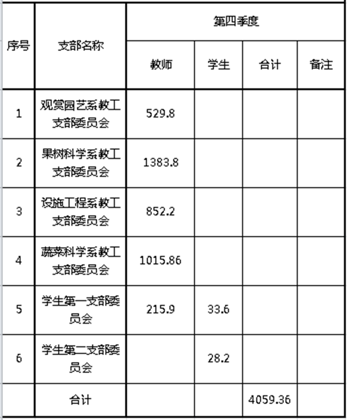 园艺学院2020年四季度党费收缴情况公示