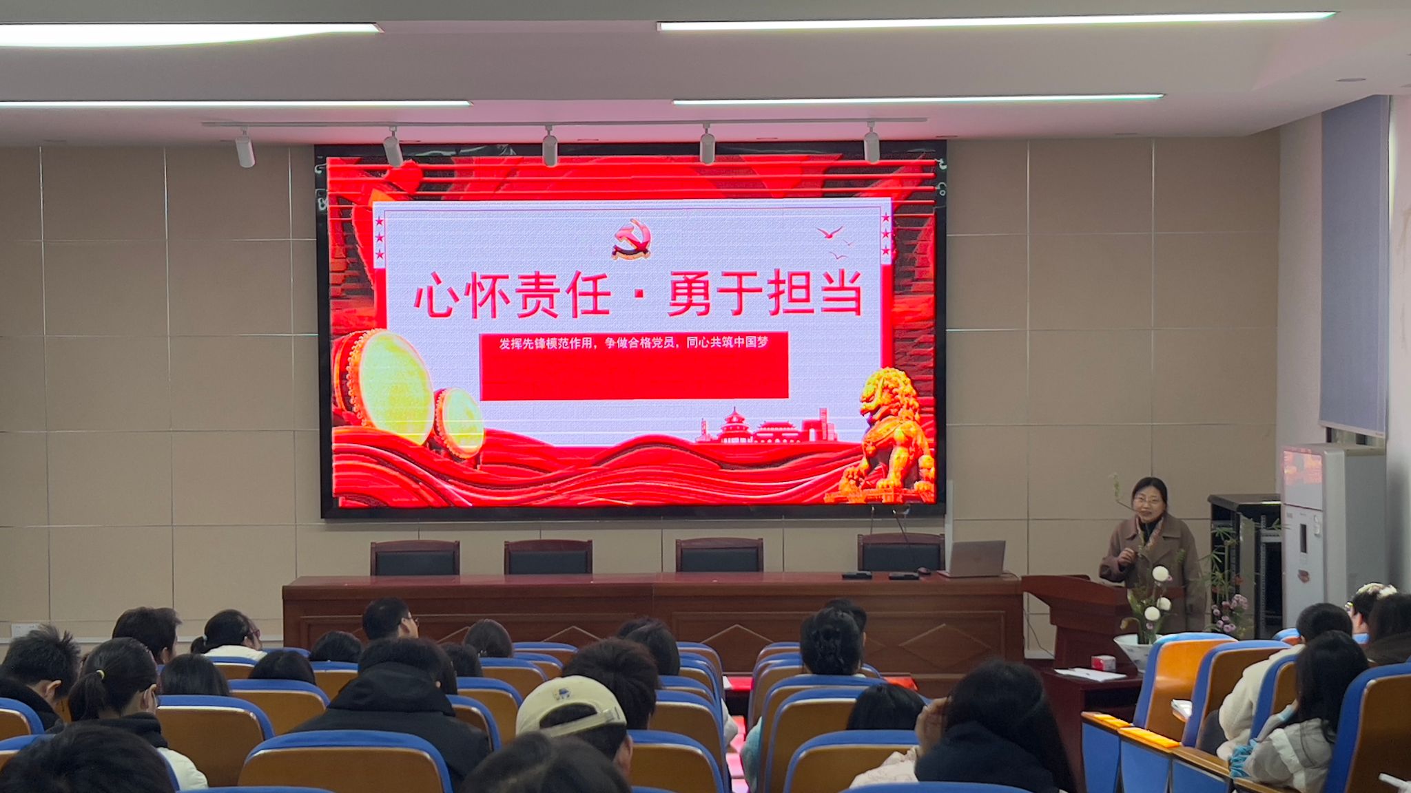 葛红以“发挥先锋模范作用,争做合格党员,同心共筑中国梦”为主题,深入分析了在以中国式现代化全面推进中华民族伟大复兴、建设教育强国以及学校争创“双一流”建设的大背景下,青年学生成长面临的新形势、新要求;着眼于高校的育人目标,根据园艺专业人才培养的特点,结合雷锋、孔繁森、张超等诸多鲜活案例,从“如何做到心怀责任,勇于担当”和“新形势下青年党员勇于担当的要求”2个方面,引导广大党员进一步坚定理想信念,明确奋斗目标,争做合格共产党员;她鼓励同学们在强化宗旨意识、大局意识、团队意识的同时,勇于担当,敢于担当,在专业学习上有建树,在综合素质历练上有提升,争做一名好党员,共同书写中华民族发展的时代华章。