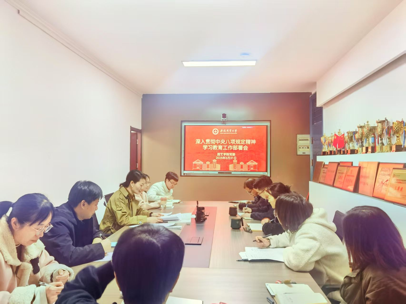 会议学习了习近平总书记关于深入贯彻中央八项规定精神学习教育的重要讲话精神,传达了中央、省委党的建设工作领导小组会议精神,传达了中共中央办公厅印发《关于在全党开展深入贯彻中央八项规定精神学习教育的通知》精神,学习了校党委相关工作会议精神,解读了学校关于开展学习教育的实施方案,并就下一步工作进行了安排。