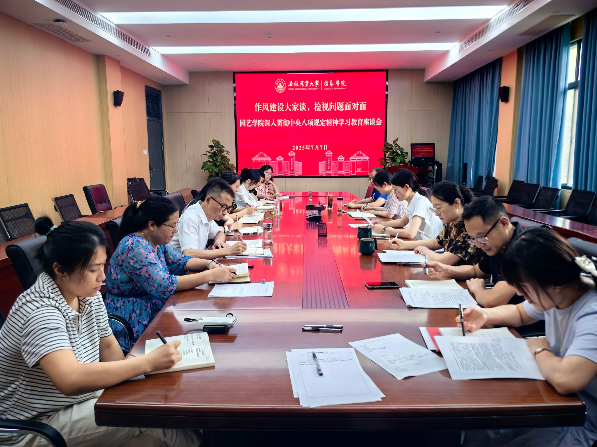本网讯 7月7日上午,学院党委组织召开“作风建设大家谈,检视问题面对面”管理干部学习教育座谈会。会议深入学习领会习近平总书记关于加强党的作风建设的重要论述和重要指示批示精神,认真学习贯彻中央八项规定及其实施细则精神。会议旨在引导管理干部将服务学科发展的实际成效作为检验学习教育成果的主战场,坚持学用结合、以学促干,在“学、查、改”中切实转作风、提效能、抓落实。学院党政领导班子成员、党政办公室及实验中心全体人员参加会议。