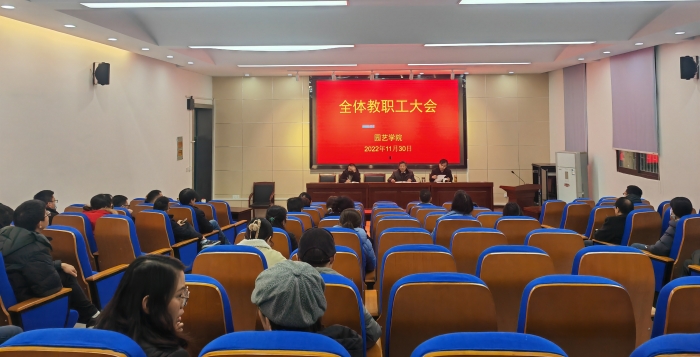 本网讯 11月30日下午,园艺学院在二教245报告厅召开全院教职工大会,专题宣讲党的二十大精神并就近期重点工作进行部署安排。学院全体教职工参加了会议。