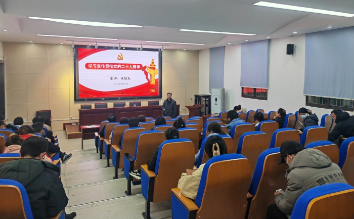 会上,学院党委书记朱绍友围绕召开党的二十大的背景、二十大报告的框架结构和基本内容等方面为大家详细解读了党的二十大主要精神。他强调全体教职工要将学习宣传贯彻党的二十大精神作为当前和今后一个时期的首要政治任务,要深刻认识党的二十大召开的重大现实意义和深远历史意义,深刻把握党的二十大精神的丰富内涵和实践要求,同时要将学习党的二十大报告同教学科研工作实际相结合,坚持问题导向,在理论学习中汲取精神力量,把学习成效转化为推动学院高质量发展的强大动力。