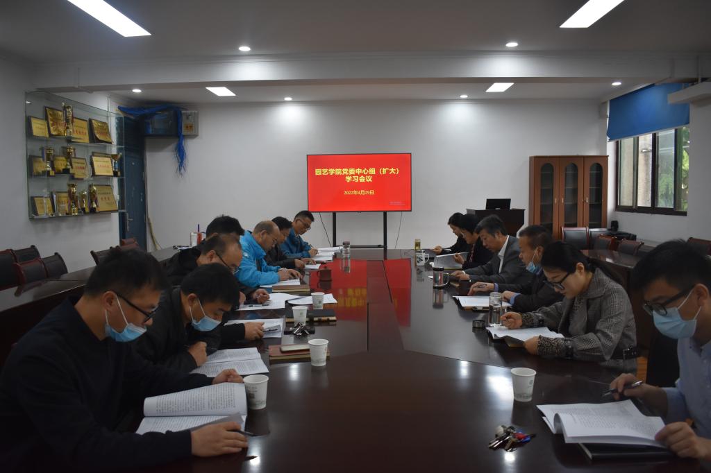 本网讯 4月29日上午,学院在二楼会议室召开党委理论学习中心组(扩大)学习会。学院党政领导、党委委员、副科以上干部、支部书记、系主任等参加了学习,会议由院党委书记朱绍友主持。