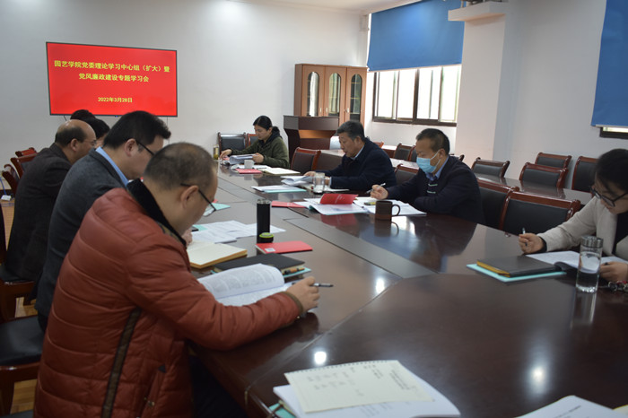 本网讯 3月28日上午,学院在二楼会议室召开党委理论学习中心组(扩大)暨党风廉政建设专题学习会。学院党政领导、党委委员、纪委委员、副科以上干部、支部书记、系主任等参加了学习,会议由院党委书记朱绍友主持。