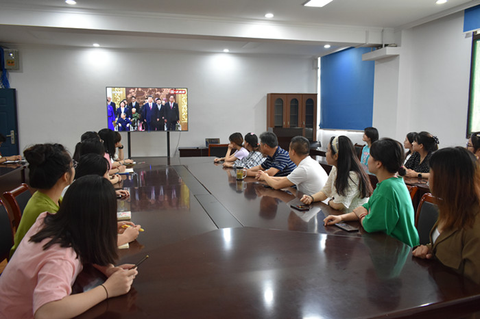 院党委副书记鄢高翔表示,今天的“七一勋章”颁给29位在不同时期不同战线为党和国家、为人民做出突出贡献的优秀党员,他们在平凡的工作岗位,恪守初心,为党、为国、为民在普通岗位做出了不平凡的业绩,内心充满敬畏,他们的英雄事迹震撼了我们每一为普通党员、普通劳动者的心,给了我们谋事创业的动力,增强了我们不断超越自我为实现中华民族伟大复兴的坚定信念。作为一民教育工作者,要在平凡的工作岗位上要坚持立德树人根本,把培养好建设者和接班人、培养接续奋斗的青春力量作为崇高使命和担当。