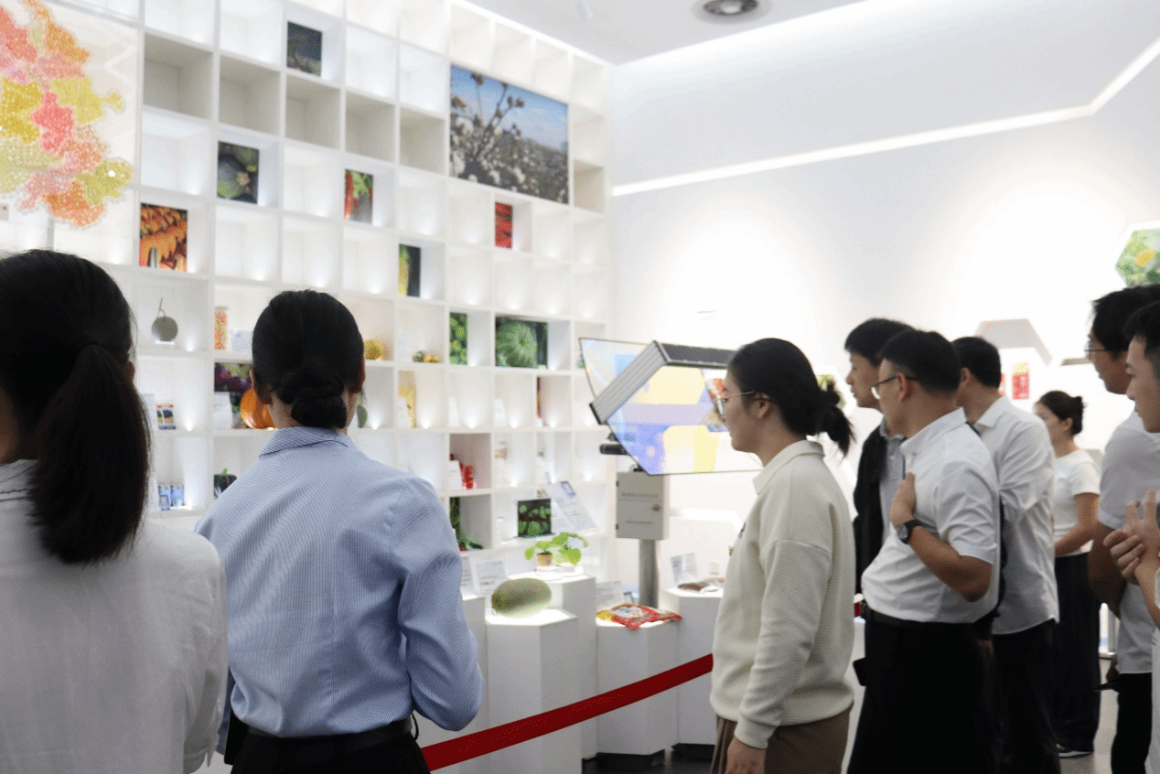 安徽创新馆内,学院师生被一件件高精尖科技产品实物所吸引、震撼和激励,深刻感受到新中国成立75周年来科技领域翻天覆地的变化。现代农业展厅解说员向同学们详细介绍了新品种、新技术的研发过程,在看到陈列的我院与协作单位共同研发的新品种、新技术时,师生们神情激动、讨论激烈,自豪感归属感油然而生。