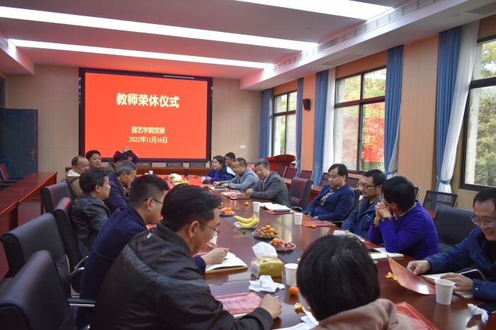 本网讯 春风化雨几十载,五洲桃李叶成荫。11月16日下午,园艺学院党委在二教326会议室举行朱立武、杨军教师荣仪式。参加仪式的有园艺学院党委委员、果树科学系全体教师,仪式由支部书记衡伟主持