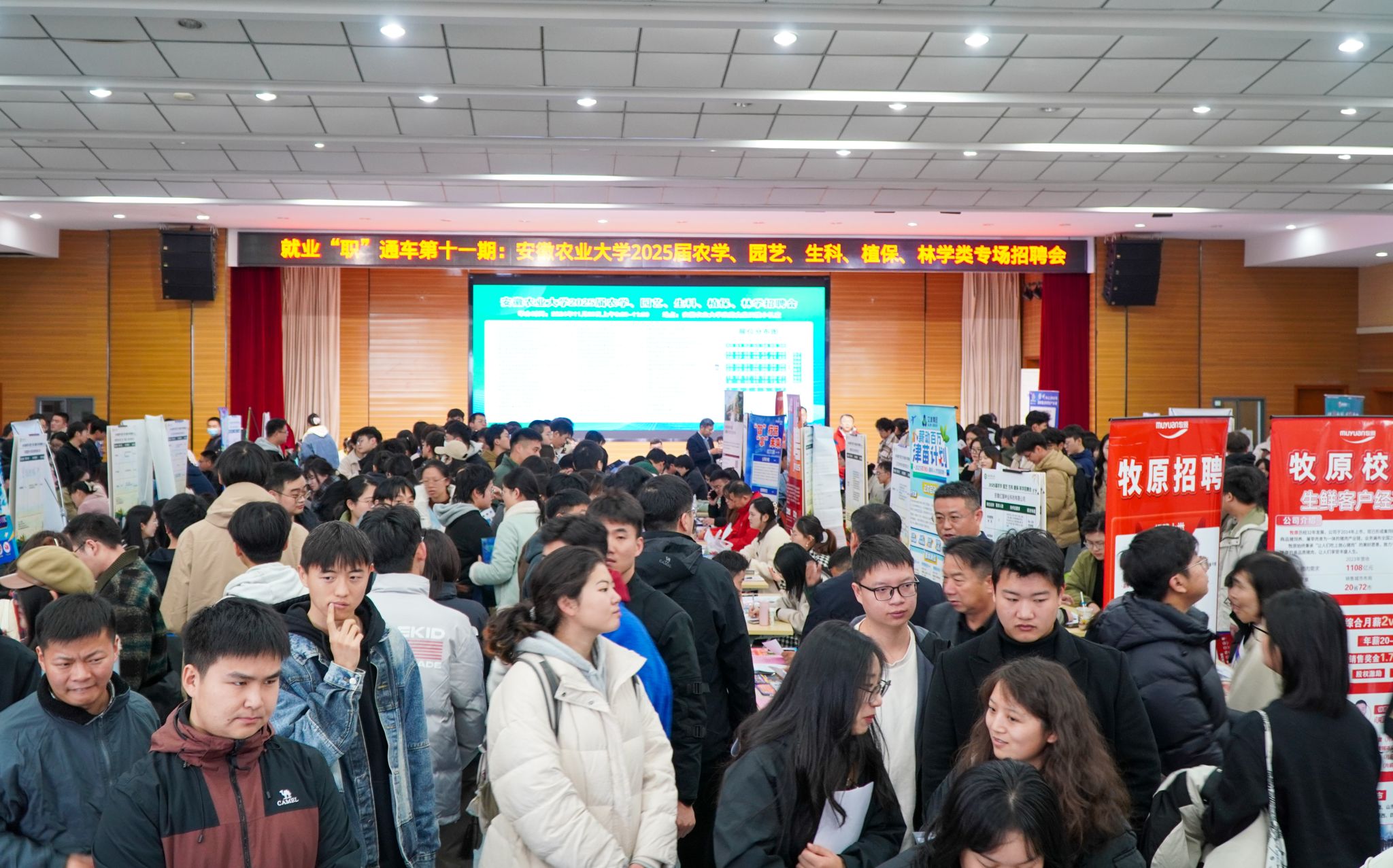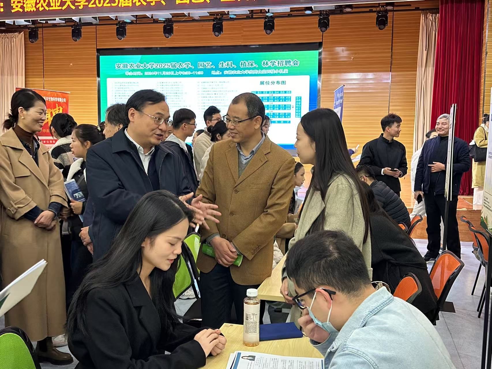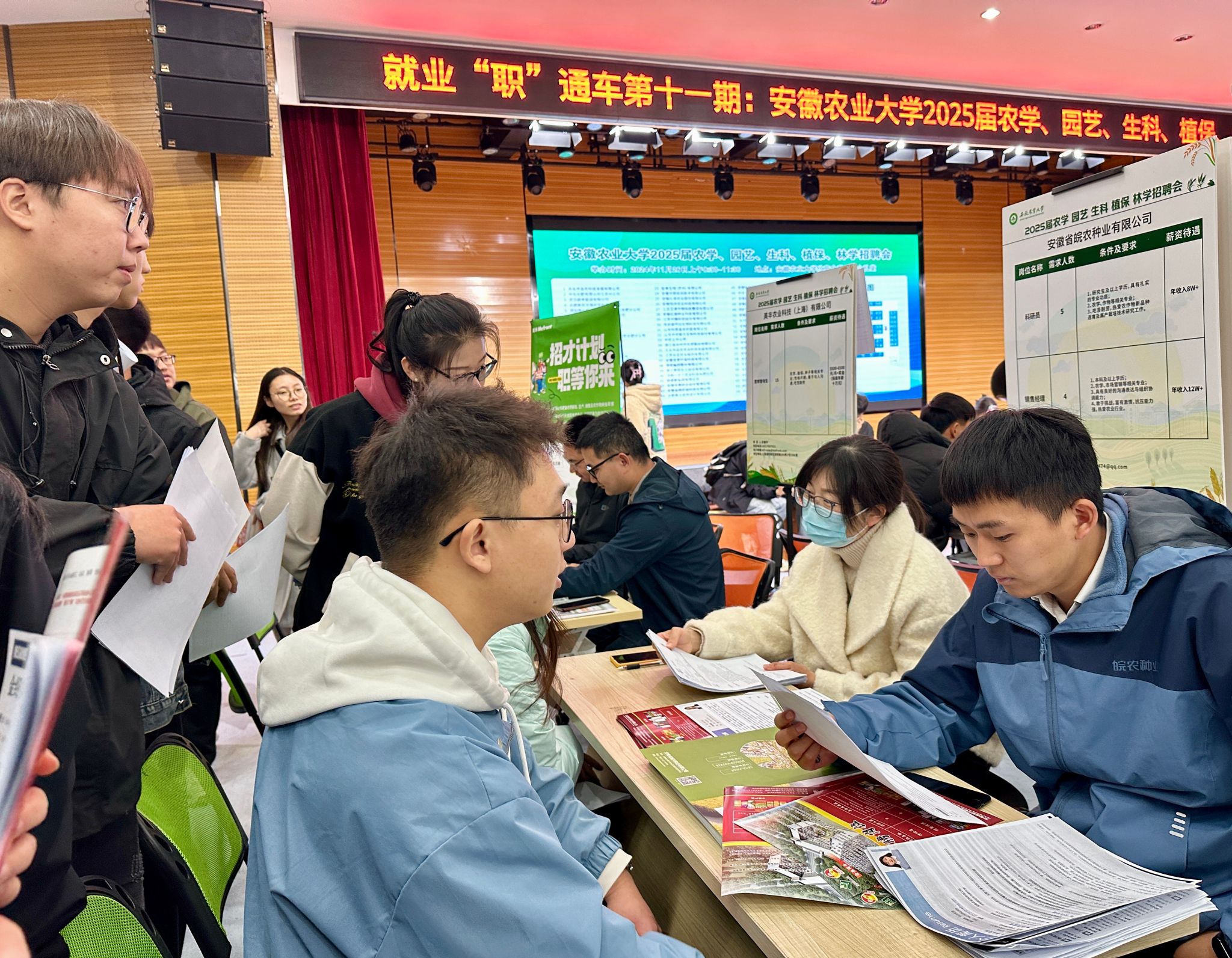 经过前期联系遴选,合肥丰乐种业股份有限公司、安徽红旗种业科技有限公司、安徽久易农业股份有限公司、东华(安徽)生态规划院有限公司等64多家优质用人单位和校友企业进校招聘,为毕业生提供2600多个就业岗位。招聘岗位涵盖了农学、园艺、生科、植保、林学、制造等多个行业,覆盖面广,较好满足了毕业生多元化求职需求。1000多名毕业生前来应聘,投递简历超3000份。招聘会现场热闹非凡,企业展板前人头攒动,用人单位耐心地为同学们介绍岗位、薪资待遇、职业发展等情况,同学们也结合自身就业需求和求职目标,积极地与用人单位开展沟通交流,表达求职就业意愿。招聘会结束后,部分用人单位还开展了宣讲和面试活动。