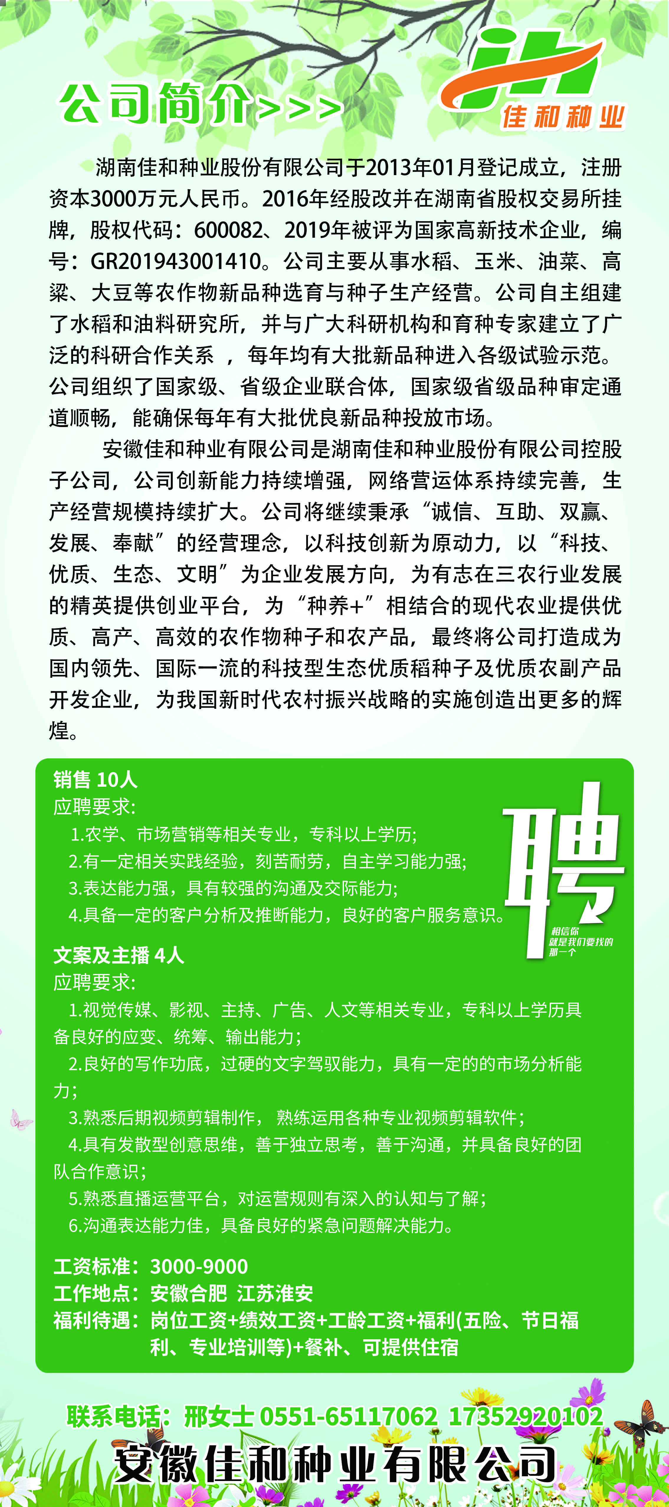 【招聘】湖南佳和种业股份有限公司