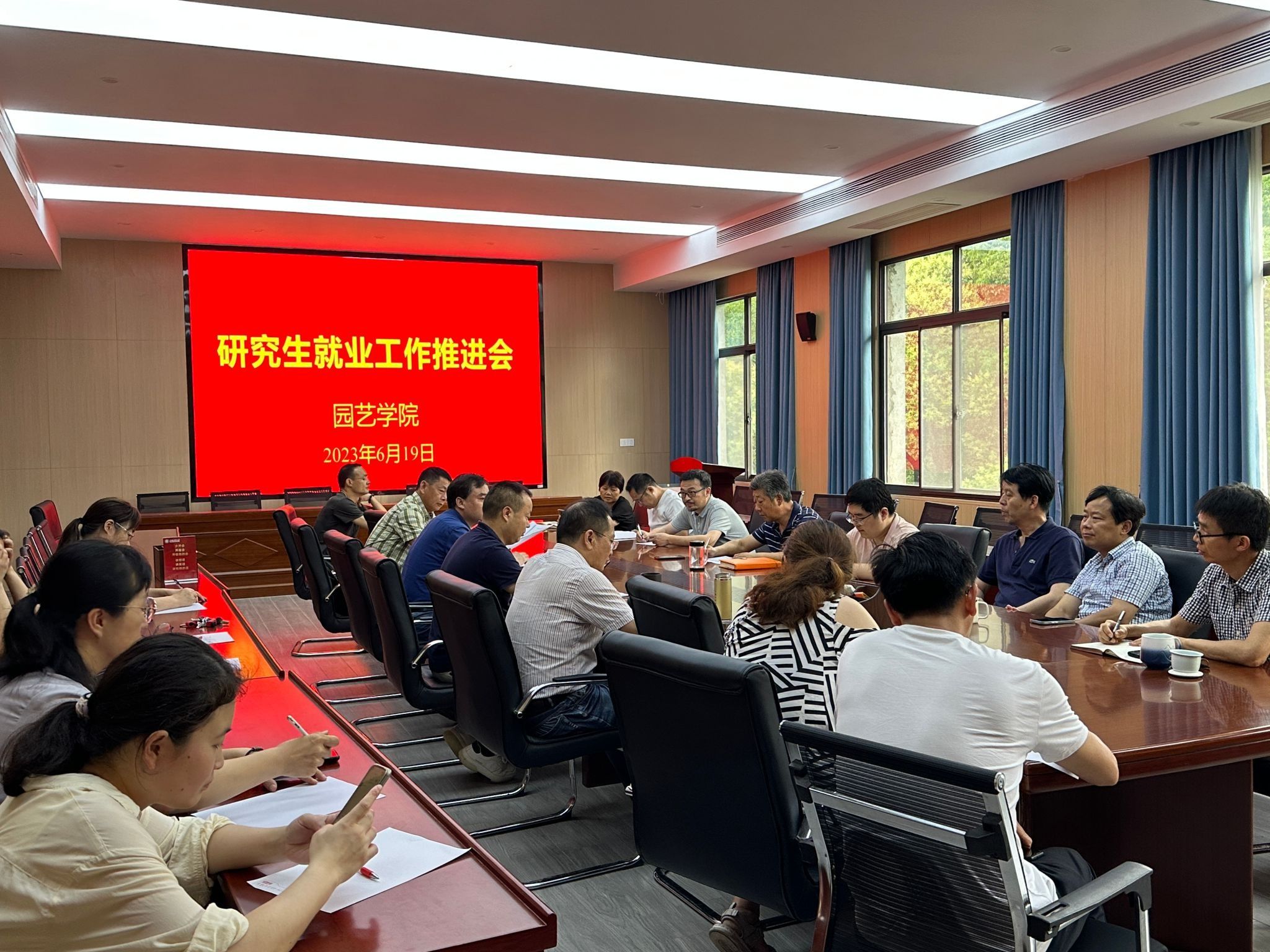 本网讯 为做好学院2023届毕业生就业工作,园艺学院每周一次召开2023届就业工作专题推进会。学院党委书记朱绍友、院长武立权、党委副书记鄢高翔、毕业班辅导员、研究生导师和部分学生分别参会。