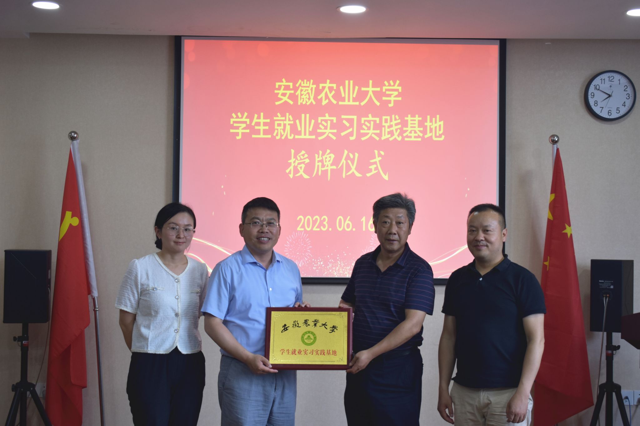 座谈会上,双方就当前行业发展趋势、人才需求形势,针对学生实习就业、企业岗位用人需求进行了深入探讨,提出了共建“梦想大地”创新试验班、共建实习基地以及开展相关技能培训等多项合作建议,为后续充分发挥校企资源优势、培养高素质应用型人才打下坚实基础。期间,双方共同为安徽农业大学就业实习就业基地揭牌,共建就业实习就业基地。