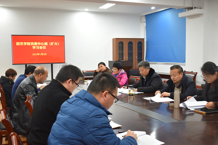 本网讯 1月6日,学院在二楼会议室召开院党委理论中心组(扩大)学习会。学院党政领导、党委委员、副科以上干部、支部书记、系主任等参加了学习,会议由院党委书记朱绍友主持。
