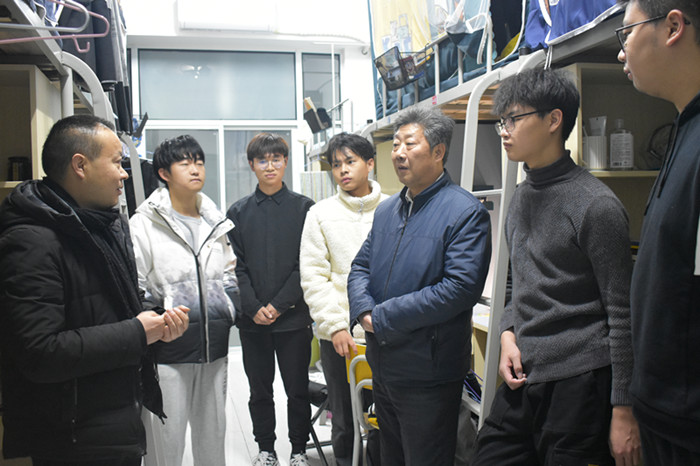学院领导一行逐个走访部分学生宿舍。朱绍友在与学生交谈中,详细了解他们的学习生活、期末考试及寒假返乡行程安排等情况,关切询问他们本学期以来,生活是否适应,学习和生活上是否有困难,并嘱咐同学们天气逐渐寒冷,要注意增添衣物,防寒保暖;提醒同学尤其要注意人身财产安全,强化安全意识和自我保护意识,谨防电信诈骗,遇到困难和问题及时与辅导员老师沟通,寻求老师和学院领导的帮助;勉励新生要增强专业学习的信心,明确专业学习的前景和方向,始终保持昂扬向上的前进姿态,珍惜把握好大学的美好时光,树立远大奋斗目标,夯实专业基础,练就过硬本领,增强综合素质,争做一名德智体美劳全面发展的优秀大学生。
