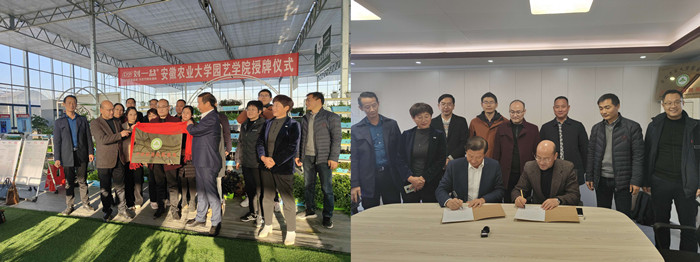 本网讯 11月24日,由安徽农业大学园艺学院与安徽芸林生态农业科技有限公司合作共建的“安徽农业大学产学研基地”,在合肥市庐阳区大杨镇举行隆重揭牌仪式。安徽农业大学园艺学院院长方从兵、安徽芸林生态农业科技有限公司董事长刘勇、园艺学院蔬菜科学系党支部书记陈国户、园艺学院果树科学系党支部书记衡伟等专家出席揭牌仪式。