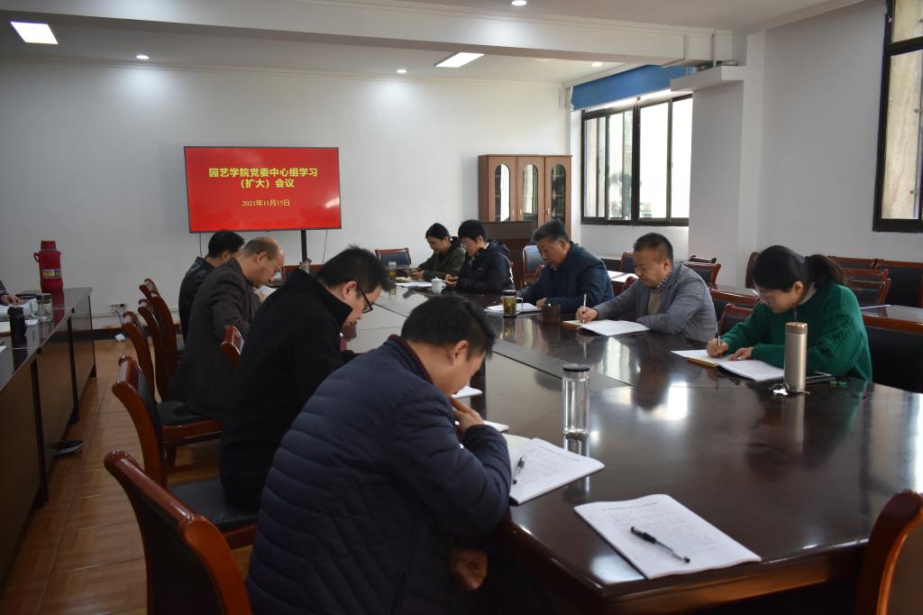 11月15日上午,学院在二楼会议室召开院党委理论学习中心组(扩大)学习会。学院党政领导、党委委员、副科以上干部、支部书记、系主任等参加了学习,会议由院党委书记朱绍友主持。
