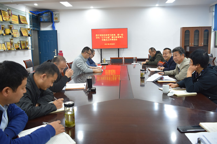 本网讯 4月26日上午,学院在二教会议室召开党史学习教育、新一轮深化“三个以案”警示教育等几项重点工作推进会。学院党政领导、党委委员、支部书记参加了会议,会议由院党委书记朱绍友主持。