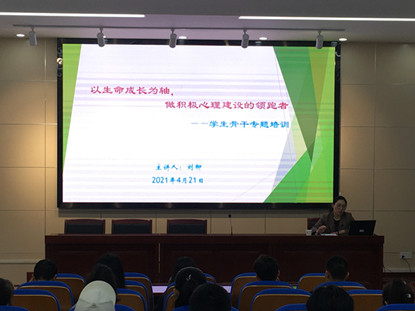 为进一步加强学院大学生心理健康网格化管理,普及心理健康知识,提高大学生心理健康问题自我管理、自我服务能力,促进大学生身心健康和谐发展,421下午园艺学院特邀学生部(处)、武装部刘柳副处长在二教245报告厅举办“以生命成长为轴,做积极心理建设的领跑者”为主题的心理骨干培训讲座学院全体专兼职辅导员学生会骨干及各班班长、团支书和心理委员70余人参加本次讲座,讲座由院党委副书记、纪委书记、副院长鄢高翔主持