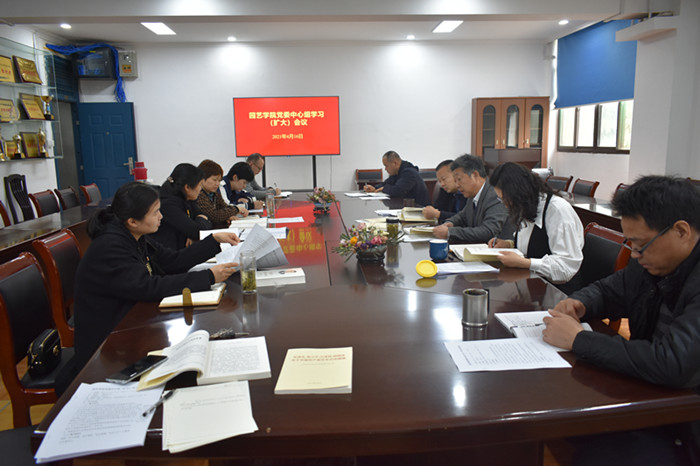 本网讯 4月16日上午,学院在二楼会议室召开院党委中心组(扩大)学习会。学院党政领导、党委委员、副科以上干部、支部书记、系主任等参加了学习,会议由院党委书记朱绍友主持。
