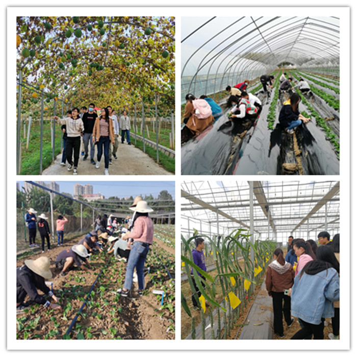 实习期间,带队教师将课堂搬到田间地头,针对不同实习地点的气候和土壤等环境条件,在蔬菜种类、播种方式、栽培设施和病虫害防治等方面对学生做精心指导,将理论学习与生产实践紧密结合,提升园艺专业技能。同时,为了拓展专业前景认知,激发学生对园艺专业的热爱,蔬菜科学系采取“校内基地和试验站为主、试验站周边基地企业为辅”的特色实习模式,赴定远县锦创家庭农场、定远县正泽生态园、明光市昌俊家庭农场和明光市艾缘农业科技有限公司等试验站周边基地企业参观学习,打通专业教学实习的“最后一公里”。