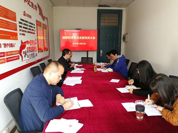 1023日上午,蔬菜科学系党支部在支部党建工作室357开展主题学习教育,并集中观看纪念中国人民志愿军抗美援朝出国作战70周年大会。会议由支部书记朱晓彪主持,学院党委副书记兼副院长吴永红出席了本次会议。