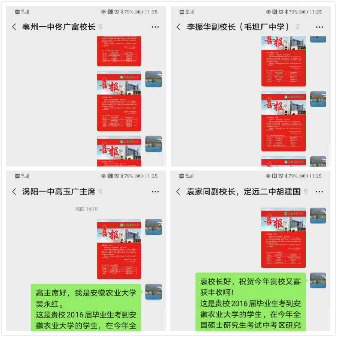 进中学。为切实做到优质生源基地中学宣传全覆盖,7月29日-8月3日,学院对受新冠疫情和洪涝灾害影响的优质生源基地中学,采取线上送达电子版报考指南、招生简章和考研喜报,先后分两组通过线上线下相结合的方式回访定远二中,亳州一中、二中,涡阳一中、二中、四中和蒙城一中等我校优质生源基地中学,提升了宣传实效。