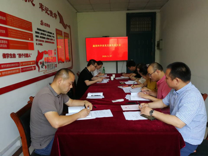 527日,蔬菜科学系党支部在二教支部党建工作室召开党员大会,热议全国两会,会议由支部书记朱晓彪主持。