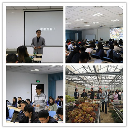 肖杰讲述了自身在国际贸易、多肉植物种植和花园建造设计等领域的多年创业经历,并以“造一座生态花园”为题介绍了生态花园的规划设计和建造过程以及个人感悟。会上,师生就多肉植物栽培技术、创业和就业如何抉择及园艺创业中如何降低风险等问题与肖杰进行了互动交流。