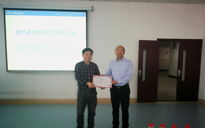 徐刚以“现代蔬菜育苗技术研究进展”为题结合自己多年的科研和工作经验,详细为大家介绍了现代蔬菜育苗技术现状及发展趋势大棚、日光温室和网室等设施蔬菜高产优质高效栽培技术,蔬菜设施栽培生长模型与优化决策系统和蔬菜有机基质无土栽培新技术等研究进展他指出我国有着悠久的蔬菜种植历史,蔬菜育苗已成为蔬菜生产过程中一个重要的技术环节,鼓励同学们要夯实专业知识,多学习、多实践、常思考,积极投身蔬菜生产现代化的新兴产业中,为我国现代化农业发展做出自己的贡献。