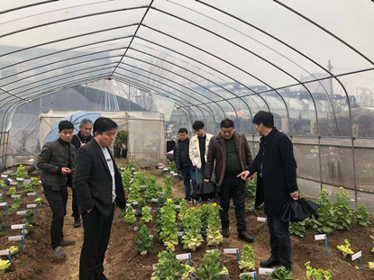 徐贤泽等人在我院副院长裴孝伯、蔬菜科学系汪承刚老师陪同下,参观了我校十字花科蔬菜育种基地。汪承刚详细介绍了我校十字花科蔬菜种质资源与育种情况,特别是安徽地区特色蔬菜的育种进展及发展方向,并就进一步深化合作进行了交流。