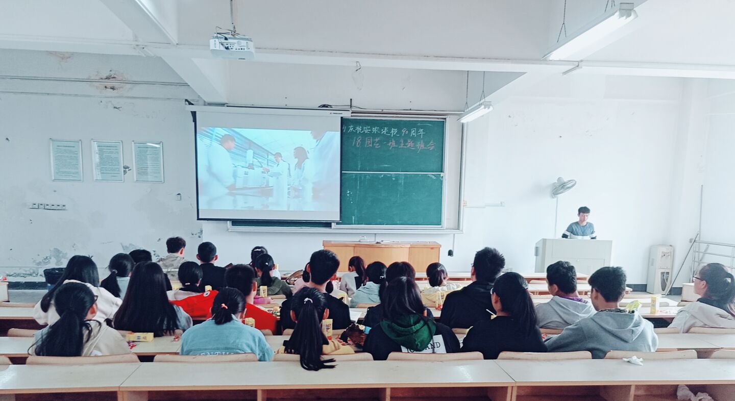 会上,负责同学首先播放了精心准备的PPT,介绍了学校90年的办学历史、文化底蕴及优秀典型人物,分享了对“大别山道路”精神和“安农故事”的理解和感悟。随后大家集体观看校庆系列视频,增强了大家对安农的自豪感和归属感。“校史知多少”、“九十周年校庆”主题分享、班徽评选等活动让主题班会推到高潮。