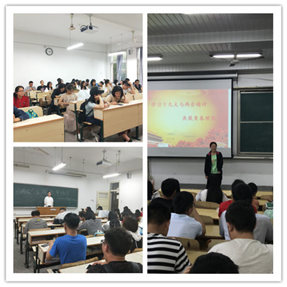 本网讯 为深入贯彻立德树人的根本任务,引导广大青年积极践行社会主义核心价值观,不断增强“四个自信”,5月份以来,我院团委在院党委的指导下,组织各班级围绕“党的十九大精神、两会精神、习近平总书记在北大师生座谈会和纪念马克思诞辰两百周年上的重要讲话精神”等四个主题开展形式多样的主题班会活动。