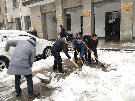会后,学院青年教职工在学院领导的带领下,清理铲除了二教门前及香樟路路面积雪。(单国雷  通讯员:赵婷)