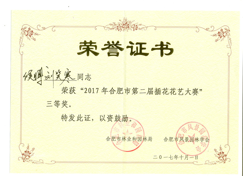9月至10月以“花儿绽放新丝路”为主题的第九届中国花卉博览会在银川西宁召开。本次大赛,学院多项花卉作品获得大会组委会、中国花卉协会和安徽省花卉协会的一致好评,载誉而归。其中学院观赏园艺系王冬良副教授 “茶花新品种—徽州粉娘”作品获科技成果新品种类铜奖;学院观赏园艺系郝福玲老师指导的学生作品《中国茶》、《敦煌飞天》等获展品类银奖、作品《香蓂》和《星语心愿》等获展品类铜奖以及其它3份作品荣获展品类优秀奖。