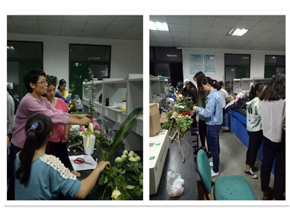 参加培训的学生来自学院各年级,30余人围绕插花不同类型,王华老师学生分为现代花艺插花、东方式插花、大型插花等7个小组为参者悉心解答花枝处理、插制过程中常出现的问题,指导大家结合园艺专业知识,用心体会传统插花的意境美和自然美。参训学生将于国庆期间代表学院参加“花样庐州,美丽合肥”第二届插花花艺大赛