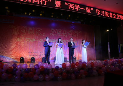 本网讯:12月14日晚,伴随着炫动的灯光,激情的音乐,我院在欣苑4楼小礼堂举办的 “聚梦园艺,与优秀同行”暨“两学一做”学习教育文艺晚会圆满落幕。全院师生欢聚一堂,共同观看晚会。学生工作部、学生处(部)处长彭庆刚,校团委书记张健,组织部副部长葛红,招生就业处副处长沈兆梅及学院党政领导出席晚会现场。