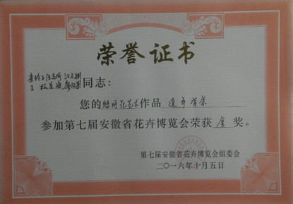 同样,在花卉博览会崭露头角还有平面压花艺术项目,郝福玲等老师带领学生创作的58份作品参赛。其中,“清明”和“静谧村庄”两幅作品获得奖;“迎客松”、 “喜上眉梢”和“干花首饰”等6份作品获得银奖;“徽韵”、“脸谱”和“春晓”等17份作品获得铜奖。我校丝网花和平面压花展厅获得创艺银奖,同时也荣获组织奖。