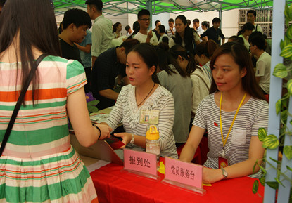 党员带头迎新生,热情周到送服务。9月3日、4日新生报到现场,我院学生党员和学生分会的学生干部充当迎新志愿者,在迎新过程中志愿者们认真负责、坚持微笑,不厌其烦地向新生及家长介绍报到的具体流程以及各种卡的使用方法,给广大新生树立榜样。学生党员的倾情奉献是践行“两学一做”的具体体现,学生干部的热情服务彰显着我院的学子风采。