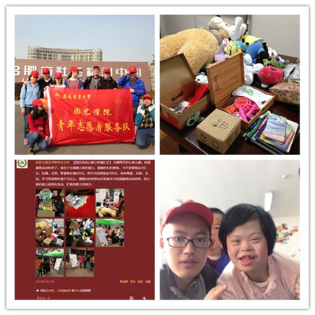 提升青年社会责任感,践行社会主义核心价值观,学习雷锋精神贵在践行,3月12日中午,学院团委组织志愿者前往淝南社区,开展义务植树志愿活动。志愿者们带领小朋友做植树宣言,同时办了“每人种下一棵树,共建美好家园”签名活动。志愿者们有的捡石头、有的挖、有的种树、有的安栅栏、有的浇水……虽然很辛苦,但大家都表示学习雷锋永远在路上;3月13日至23日学院启动为合肥市福利中心儿童募捐活动,共募捐得食、衣物、玩具等1320多元价值物品。在合肥市福利院里,志愿者们通过讲故事、唱歌、识汉字做游戏等方式与小朋友们交流聊天,志愿者们的爱心和关怀让小朋友们感觉到满满的温暖。