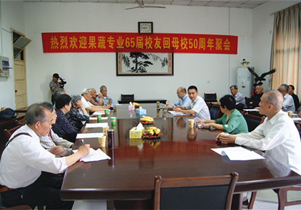 姗步几回眸,两鬓霜白重执手。6月5日,初夏林荫,美丽的安农显得格外迷人。分别母校半个世纪的65届果蔬专业近20位校友风尘仆仆从全国各地赶来相聚母校,在学院会议室举行毕业50周年座谈会。院党委书记张令峰、副院长方从兵热情迎接了阔别已久的园艺学子。近90岁高龄的65届果蔬专业授课教师叶家栋教授及部分系主任老师参加了座谈会。