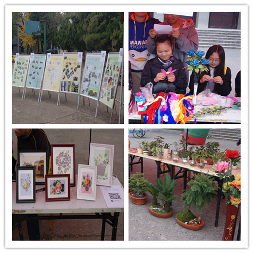 本次文化艺术节优秀成果展分为活动成果展区和园艺特色作品展区。活动成果展区向全校师生展示了寝室文化月、“我眼中的园艺”摄影比赛、园艺“LOGO”设计大赛、水果雕刻比赛和花卉礼仪手册设计大赛等活动的优秀作品;园艺特色作品展区则向广大师生呈现了平面压花、丝网花、组合盆栽、水培植物、叶脉书签……琳琅满目的优秀作品、现场手工制作丝网花给这个冬天送上一缕春风,吸引了大批师生留足参观。除了展示外,现场还设立了优秀作品投票、“花果蔬”常识竞答等互动环节,让现场的气氛变得异常热烈。
