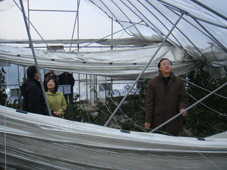 1119园艺学院朱世东院长带领园艺学院和工学院联合组成的专家组,结合国家科技支撑计划项目“蔬菜大棚结构研究与减灾避灾技术示范”,赴“大棚蔬菜之乡”和县开展抗雪减灾避灾科技活动。此次雪灾导致和县部分塑料大棚棚架断裂、棚体坍塌,棚内即将上市的蔬菜受冻,灾情严重。专家组在县农委、科技局等主要部门负责人的陪同下,实地考察了和县蔬菜科技示范园及周边受灾比较严重的地区,积极指导抗雪减灾避灾,开展雪后生产自救和技术指导,同时对支撑计划项目组所研制的新型塑料大棚性能进行进一步测试,与当地科技人员塑料大棚结构标准化研究进行了深入讨论交流,制定了塑料大棚结构优化技术方案,产生良好的社会影响。
