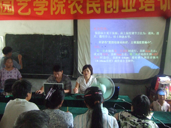 本次集中培训,园艺学院派出了由朱世东院长带队的经验丰富的教师团队,他们根据培训方案、结合学员实际、按照农民所需,系统地为农民学员传授创业理念、创业技巧、高山蔬菜新品种新技术、特种果蔬栽培技术、园艺产品市场营销等创业知识和创业技术,并邀请黄山市农委相关专家就当地农业产业化现状及发展战略作了详细讲解。授课期间专家教授们还带领学员走到田间地头手把手的教授专业技能,学员感到受益匪浅。