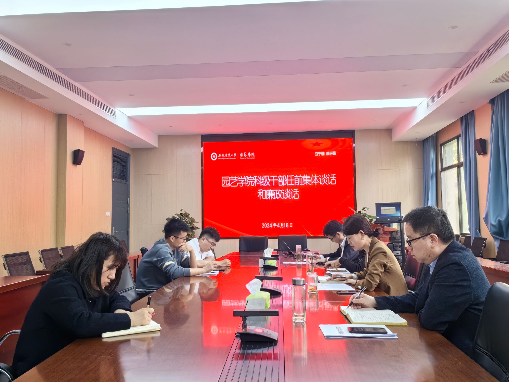 本网讯 4月18日下午,园艺学院党委在二教326会议室开展新提任科级干部任前集中廉政谈话。学院党政班子成员、新提任科级干部参加会议。会议由学院党委副书记、纪委书记陈公伟主持。