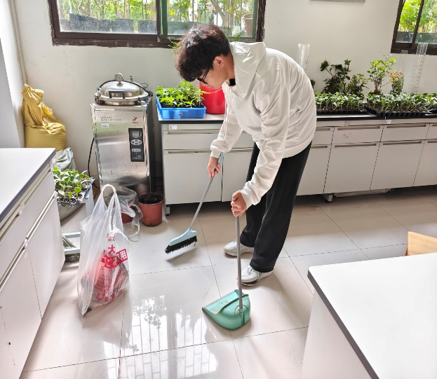 为改善学院整体卫生状况,督促学生养成劳动好习惯,园艺学院学生会组织学生开展教室、实验室以及宿舍的卫生清扫活动。同学们利用准备好的劳动工具,将桌面上的污渍、笔迹进行了彻底地擦拭清洗,为一张张课桌“改头换面”。从平常不会注意到的角落到课桌里的纸屑,再到窗台上的灰尘都被彻底清理,用自己的实际行动为学院增添了一份清新、一抹明亮,更是用行动给同学们营造一个安全、健康、和谐、尚美的学习环境氛围。为了让同学们养成劳动好习惯,鼓励同学们自觉爱护宿舍卫生,不断增强同学们爱校、护校的责任感和使命感。
