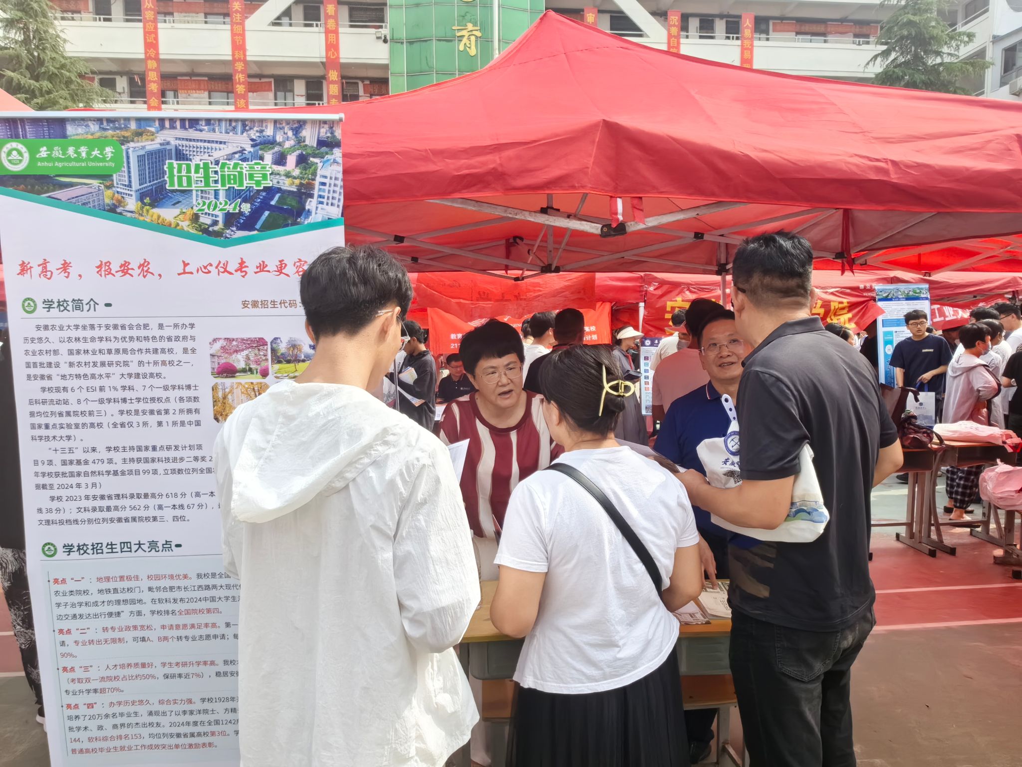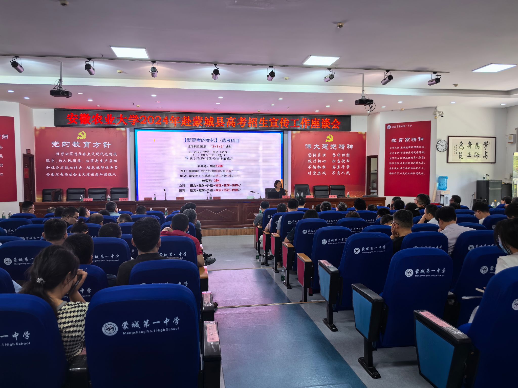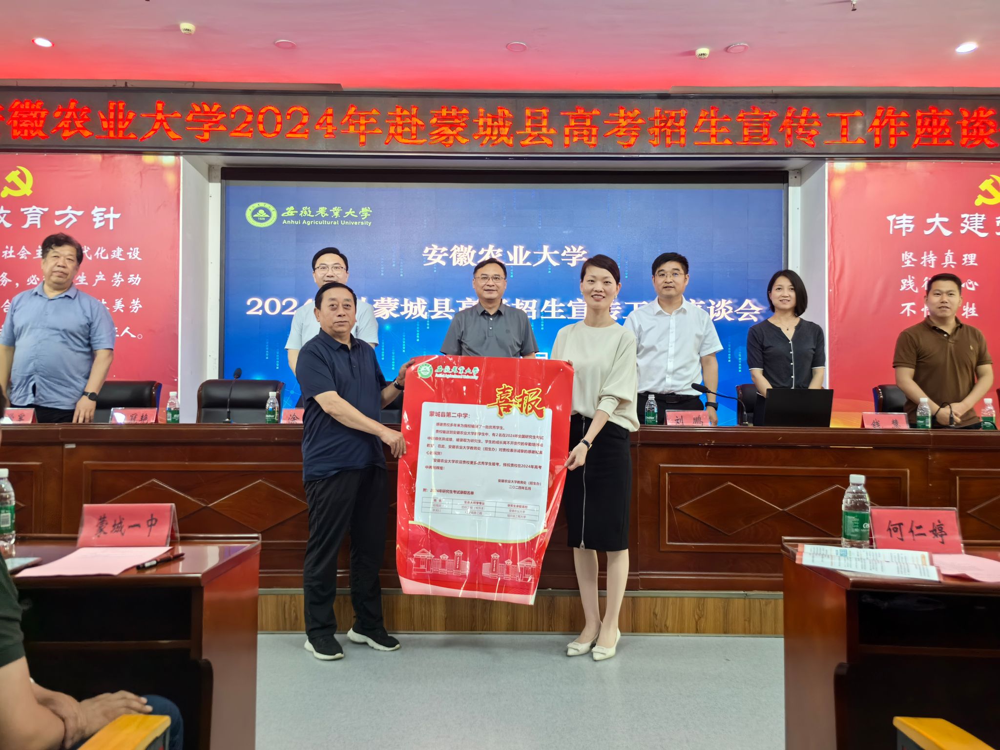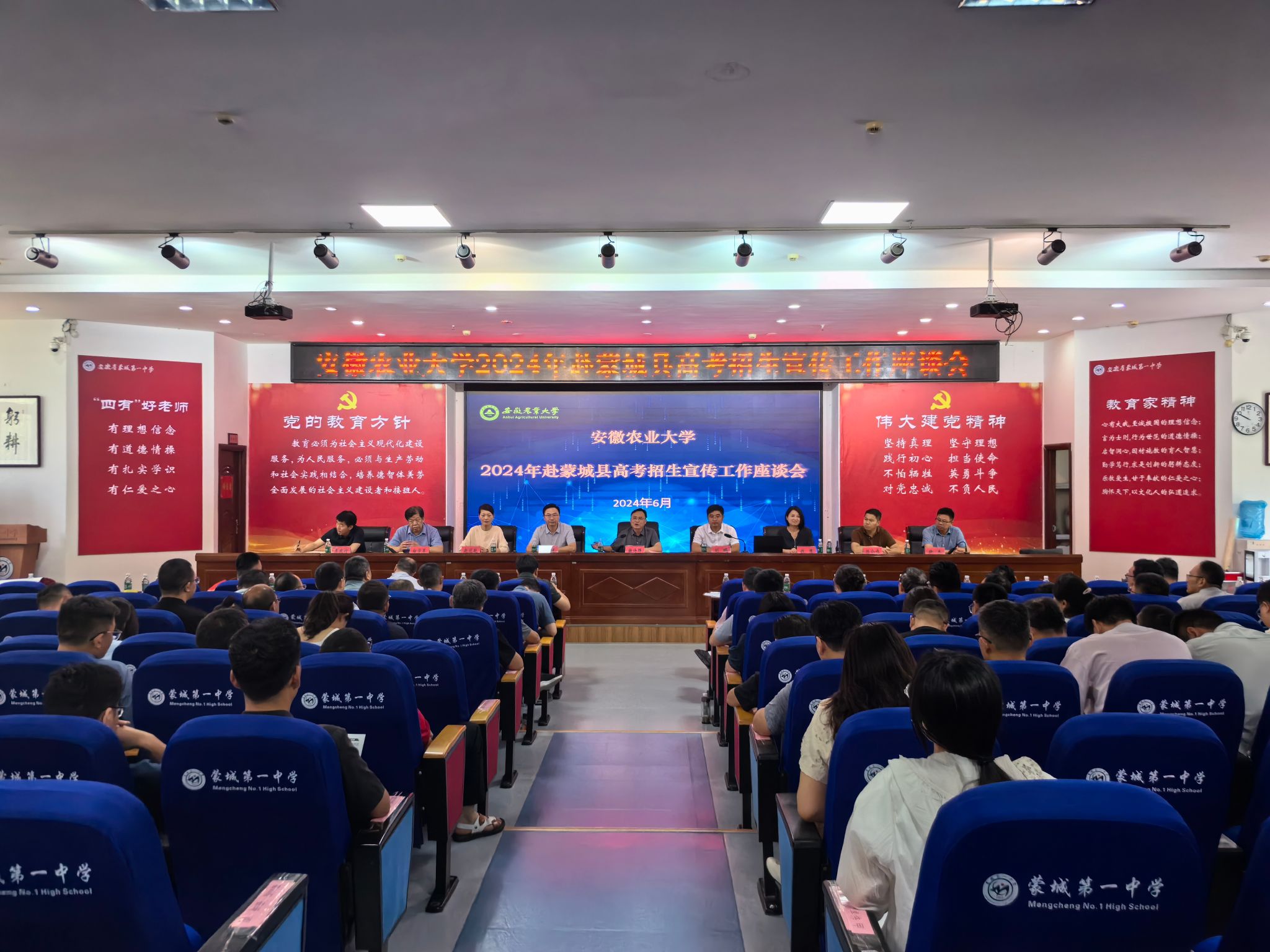 为充分发挥校友作用,整合优势资源,扩大招生宣传影响力,吸引更多优质生源。6月26日,蒙城县副县长刘鹏主持召开全县高中校长和高三毕业班班主任座谈会,操海群从学校的深厚底蕴、优质师资力量、高能级平台、人才培养质量、就业方向及发展前景等方面,为大家介绍与蒙城携手培养强农先锋、社会英才,助力农业强国强省建设的底气、志气和骨气。钱慧解读招生政策和志愿填报辅导。宣讲结束后招生小组为班主任、家长和学生解答报考疑问,现场反响热烈。