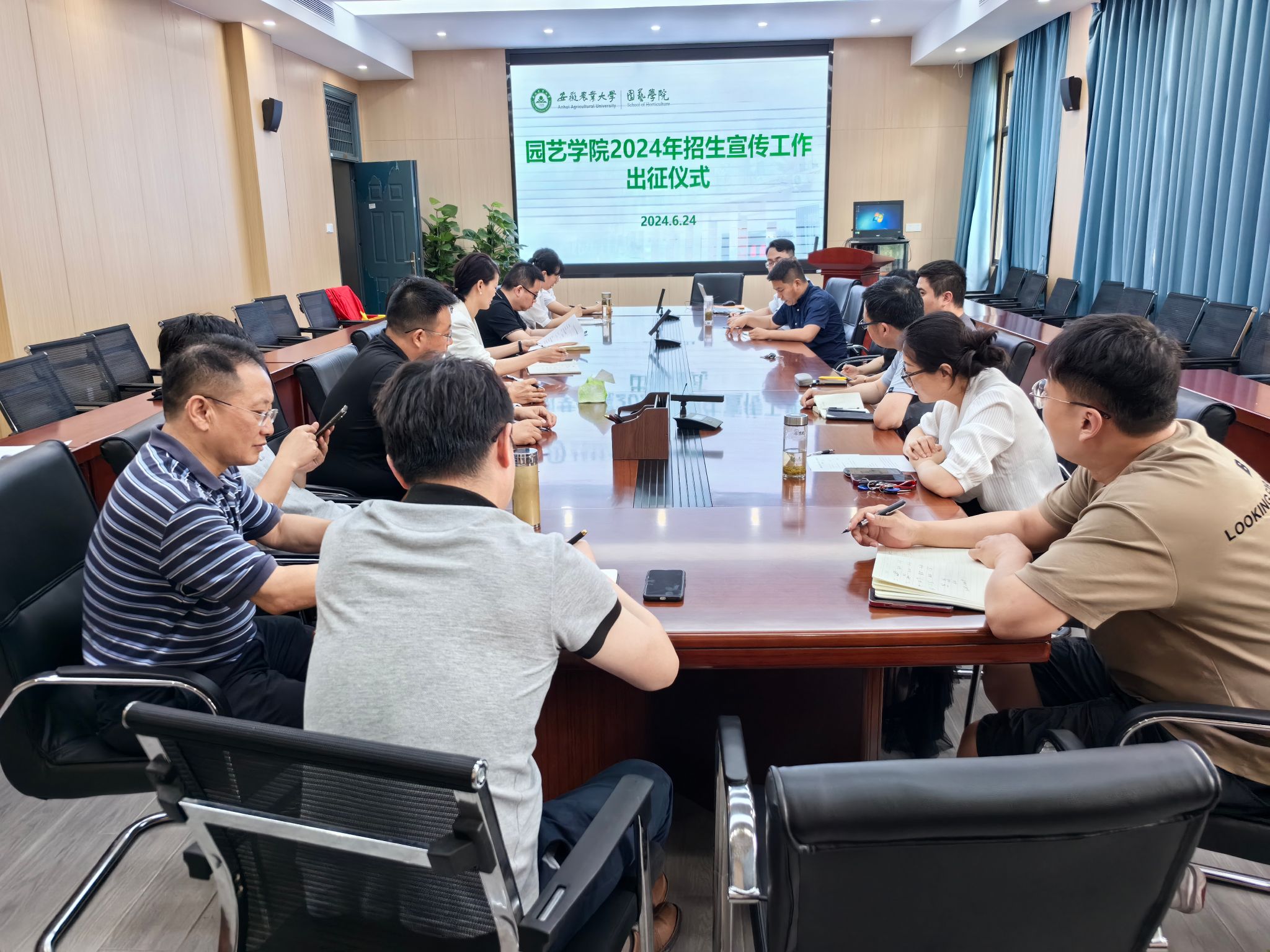 今年是新高考改革首考之年,为高质量完成今年的招生宣传工作,学院党委高度重视,制定《园艺学院2024年招生宣传工作方案》,成立以党委书记为组长的招生工作领导小组,组建11支由学院领导班子带队,以高层人才、资深教授为主要成员的招生宣传小组。6月24日,学院举行2024年招生宣传工作出征仪式,进一步深化思想认识,强化责任落实,并就招生宣传政策进行再解读和培训,确保人人精通政策、人人尽职尽责。